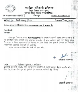 1 अंतरित ऑनलाइन सन्दर्भ 13-04-2023 अधिशासी अभियन्ता,विघुत-मिर्ज़ापुर,विद्युत 21-04-2023 आख्या श्रेणी - प्रकरण मांग श्रेणी का है
